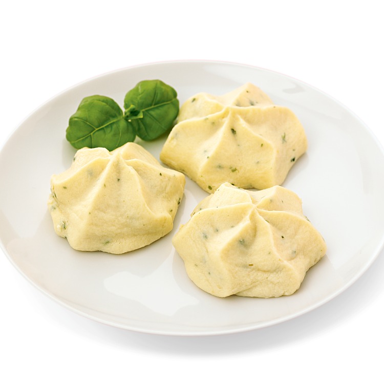 Blomkål 62 %, vand, ÆGGEBLOMME, rapsolie, ÆGGEHVIDEPULVER, grøntsagsbouillon (salt, kartoffelstivelse, løgpulver,pastinakpulver, gulerodspulver, rapsolie, løvstikkeekstrakt, porreekstrakt, løvstikke, gurkemeje) salt, løgpulver, persille, hvid peber.