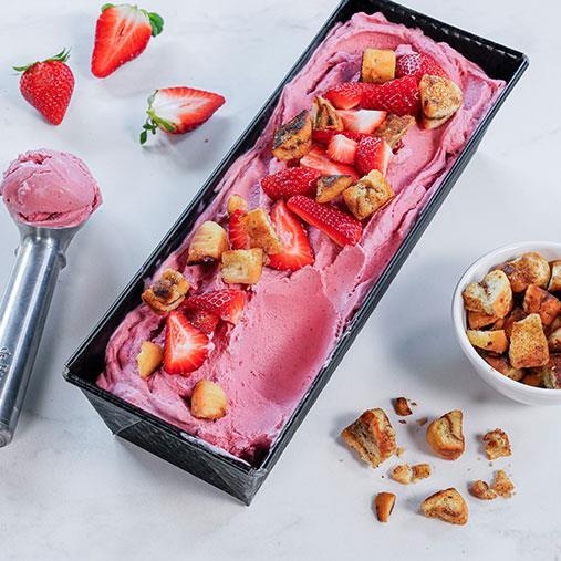 6. Top med kanelbollecroutoner og friske jordbær.