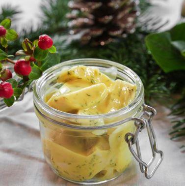 Alternativt kan du bruge siet sauce fra karrysild og lægge stykker at timbalerne heri. Lad det trække en times tid.