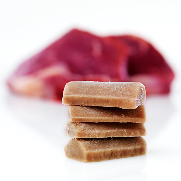 Pureret oksekød 54 %, vand og modificeret majsstivelse.