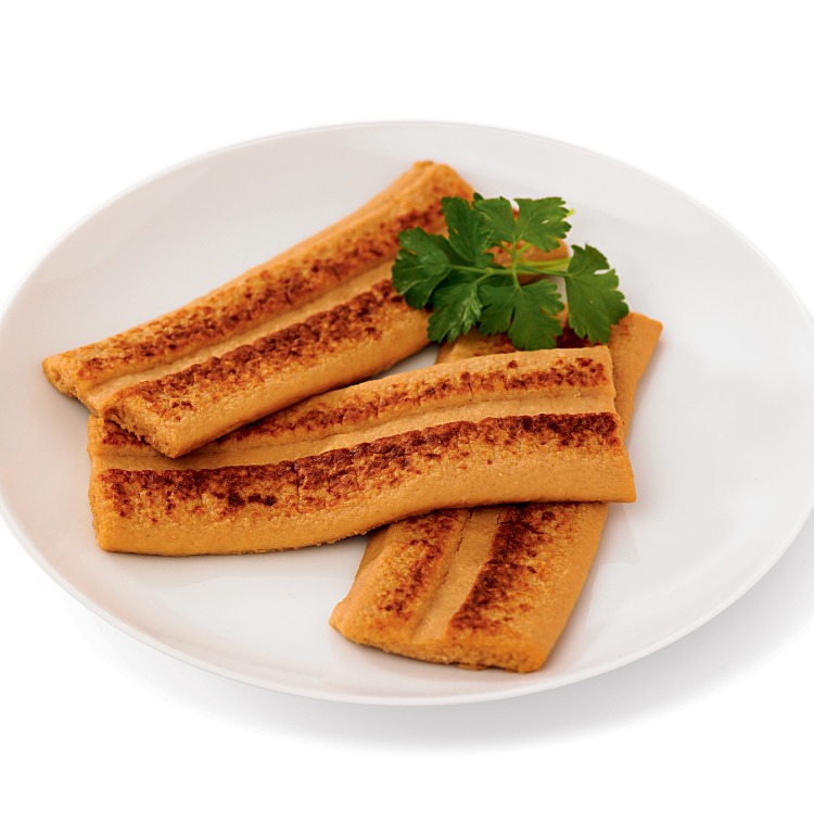 Svinekød 36 %, ÆGGEHVIDE, ÆGGEBLOMME, modificeret stivelse (majs,kartoffel), vand, rapsolie, salt, druesukker, rødbedepulver, løg, pastinakker, peber, citron, paprikaekstrakt og røgaroma. Der indgår 21 % skinkekød i produktet.